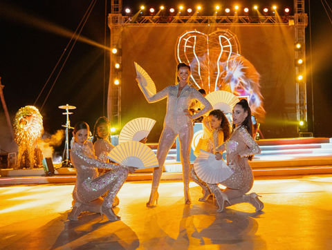 For Pricis’ birthday, Hello Moments transformed the desert into an open-air fantasy, a blend of Bohemian opulence, tribal energy, and avant-garde performance.