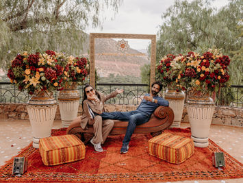 Every detail from hand-embroidered textiles and terracotta tones to traditional music echoing through the valleys was designed and produced by Hello Moments as an ode to authenticity. Guests were greeted by the warmth of candlelight, the melodies of Amazigh violins, and the scent of orange blossom carried by the mountain breeze.